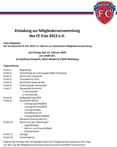 Einladung zur MV des FC Este 2012 eV 24.01.2025 | |||